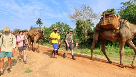 We followed the road, which was mostly uphill…isn’t the beach at sea level and “all downhill from here” John??? We crossed a small section of tarmac (which made us chuckle -see photo) which was at a junction in a village we passed, where we saw a speckled green snake (Philothamnus punctatus) and a stream for some of us to take a quick dip.